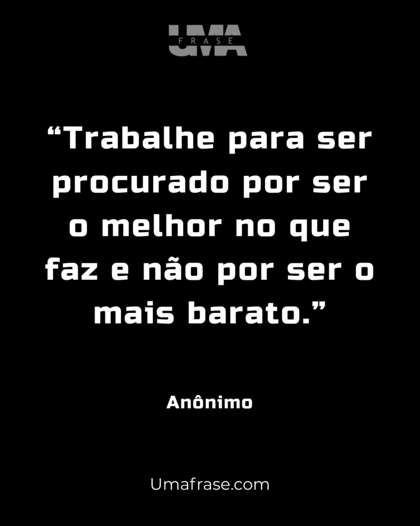 “Trabalhe para ser procurado por ser o melhor no que faz e não por ser o mais barato.”